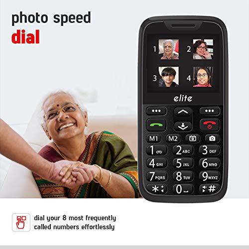 SeniorWorld Easyfone Elite with Sound Amplification – 2.3″ phone with 20+ senior citizen friendly features like Loud sound, sound booster, Dock charger, Photo speed dial, SOS button, Auto call back, App based Remote phone configuration etc. – Black