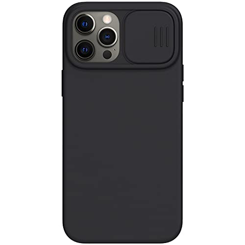 Nillkin Case for Apple iPhone 12 Pro Max (6.7″ Inch) CamShield Silky Soft Liquid Silicon + PC Finish Camera Close & Open Magnetic Works with Magsafe Charger Inside Microfible Lining Black