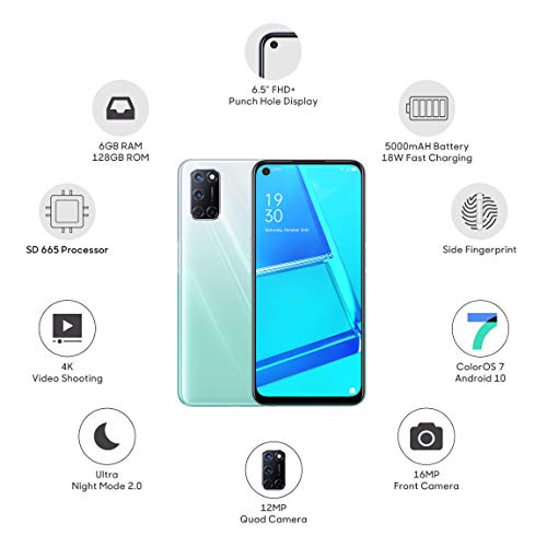 OPPO A52 has an ultra-high-resolution display with Neo-design and ultra-narrow side of only 1.73mm. Enjoying a clearer, more immersive viewing experience from watching videos to playing games.The 5000mAh large battery guarantees all day use even when it is used at high intensity. 18W fast charge make sure a quickly recharge during pieces of time.The entire series is equipped with 128 GB/UFS 2.1 storage. The continuous reading performance improves by 61%2, making it faster to install apps and copy files.The constellation-array cameras are arranged with a large aperture AI main camera, a 119° ultra wide angle lens, and two unique portrait-style lens. Easily handle every condition whether ultra-clear video, pure night view, or beauty selfie