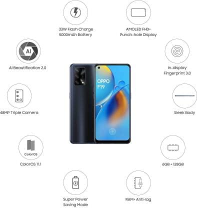 The OPPO F19 is a smartphone designed and created to match your dynamic and stylish lifestyle. This smartphone features a 5000 mAh Battery for uninterrupted use, an AMOLED FHD+ Punch-hole Display for clear visuals, and an AI Beautification Selfie Camera to capture striking selfies with every click.