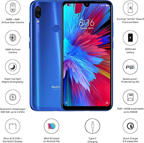 Hold the Redmi note 7S in your hand and get ready to revel in an efficient and luxurious smartphone experience. A powerful 2. 2 ghz qualcomm snapdragon 660 aie octa-core processor, a (48 MP + 5 MP) dual-rear camera, a massive 16-cm (6. 3) fhd+ dot notch display and features such as ai scene detection, face unlock, and ir remote control come together to provide you with a transcendental smartphone experience.